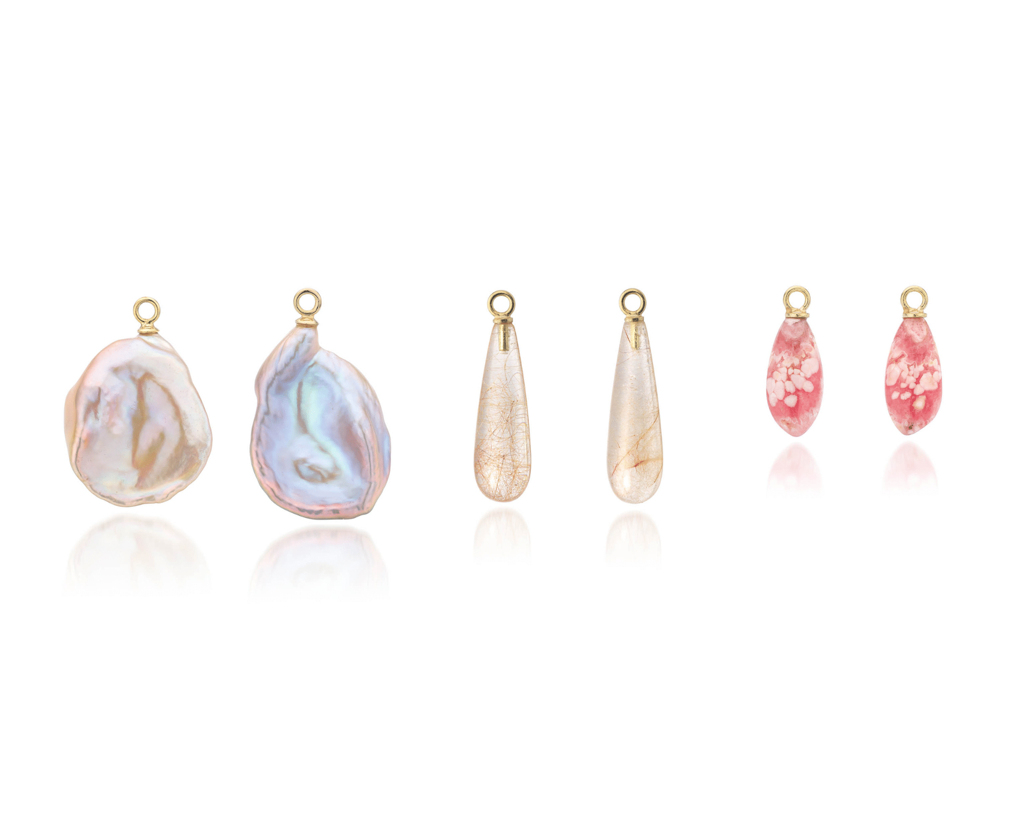 Artikelnummers: keshi parels: G-00-VKP (klein of groot), rutielkwarts: G-00-Vrt, rhodochrosiet: G-00-Vrh