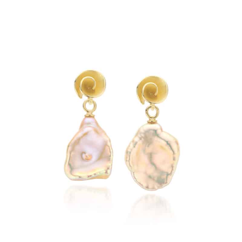 01 – Roosjes oorbellen (18 k goud) met verwisselbare keshi parels (parels verkocht)