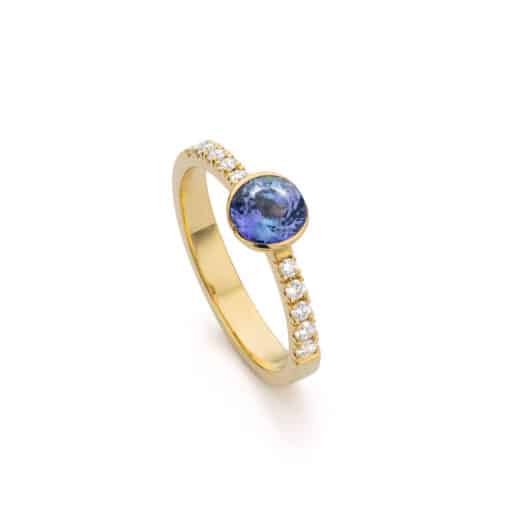 Handgemaakte 18 karaat gouden ring in met bi-colour tanzaniet en diamant – Midsummer Night`s Dream Allure collectie