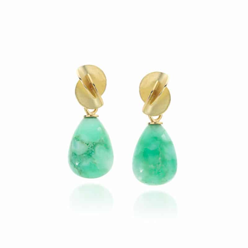 42 – Symbiose oorbellen (18 k goud, beschikbaar) met verwisselbare chrysopraas