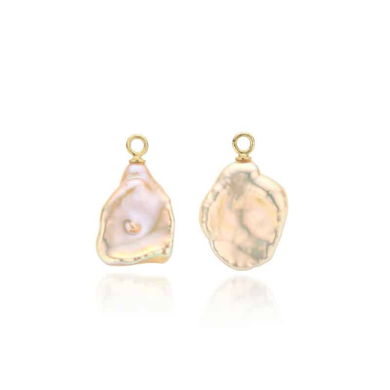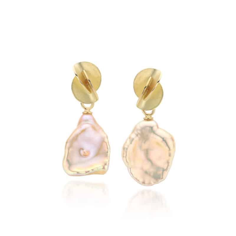 42 – Symbiose oorbellen (18 k goud) met verwisselbare keshi parels