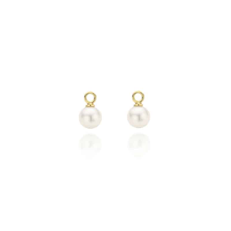 Symbiose oorbellen (18 k goud) met verwisselbare witte zoetwaterparels